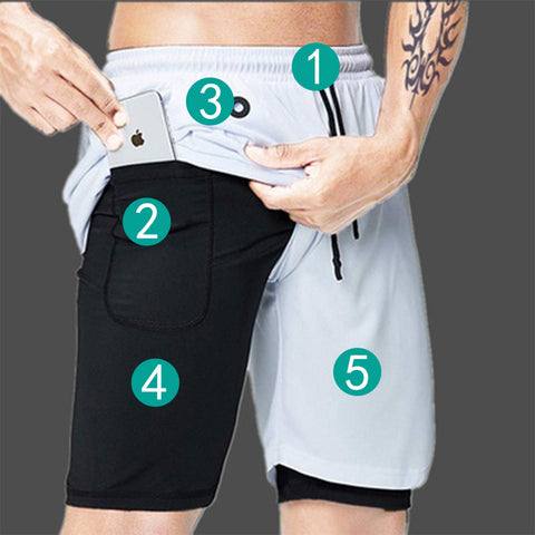 Breathable Soft Men's Running Two-Layer Pocket Shorts